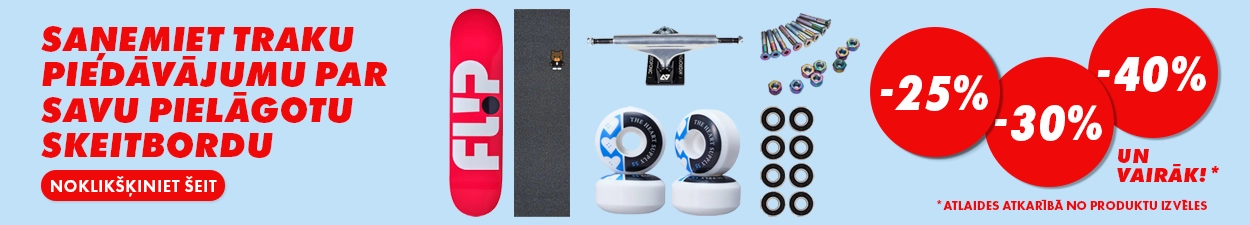 Lai padarītu iepirkšanos vienkāršāku, esam sagrupējuši visus skateboard piederumus pārskatāmās kategorijās: